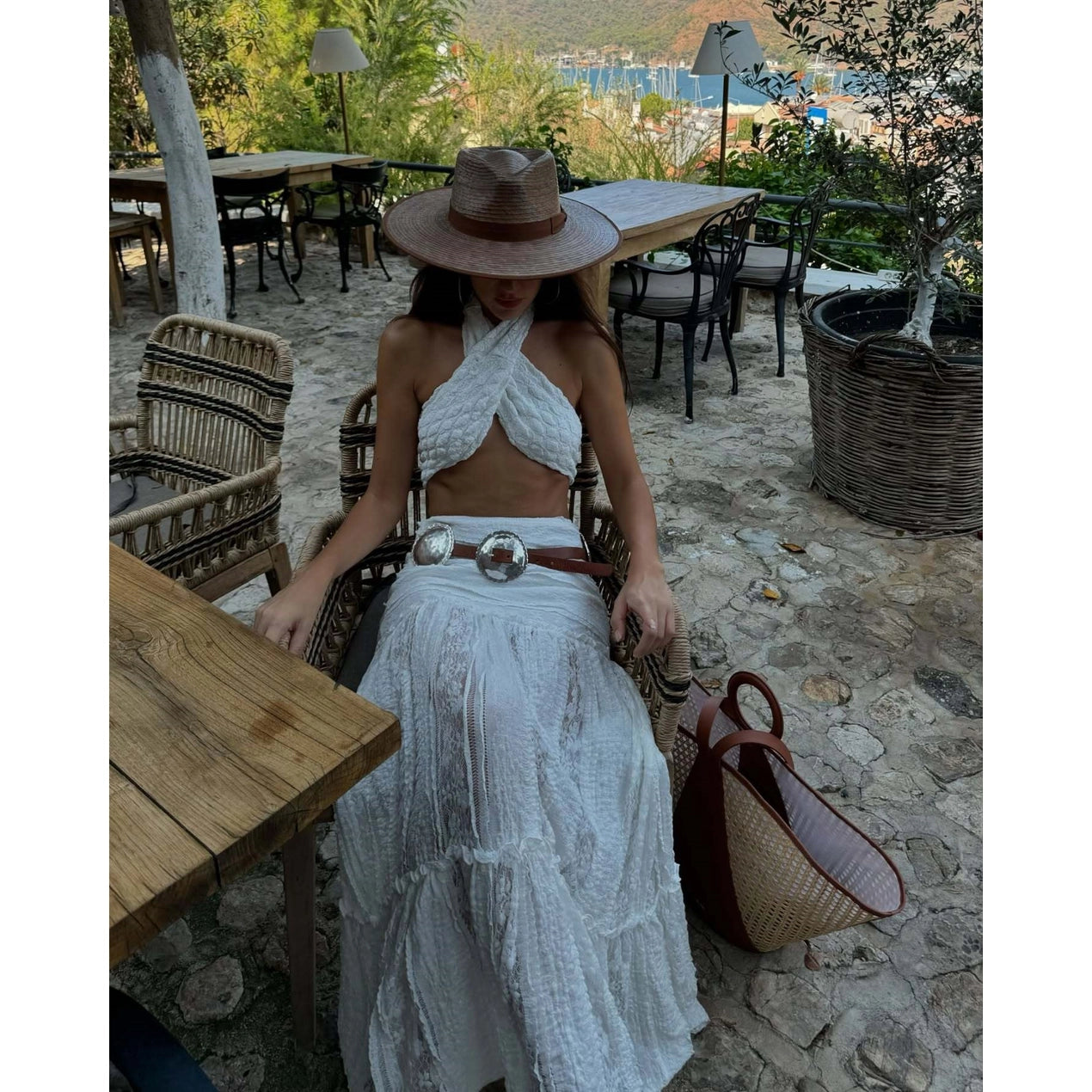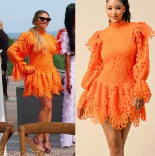 Adriana wearing our Orange Crochet Frill Mini Dress
