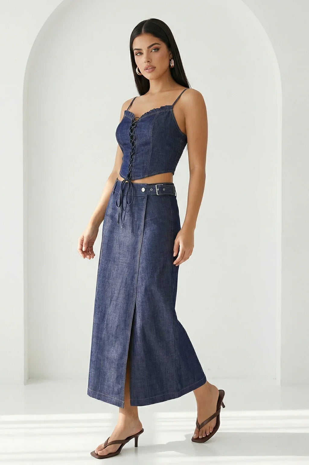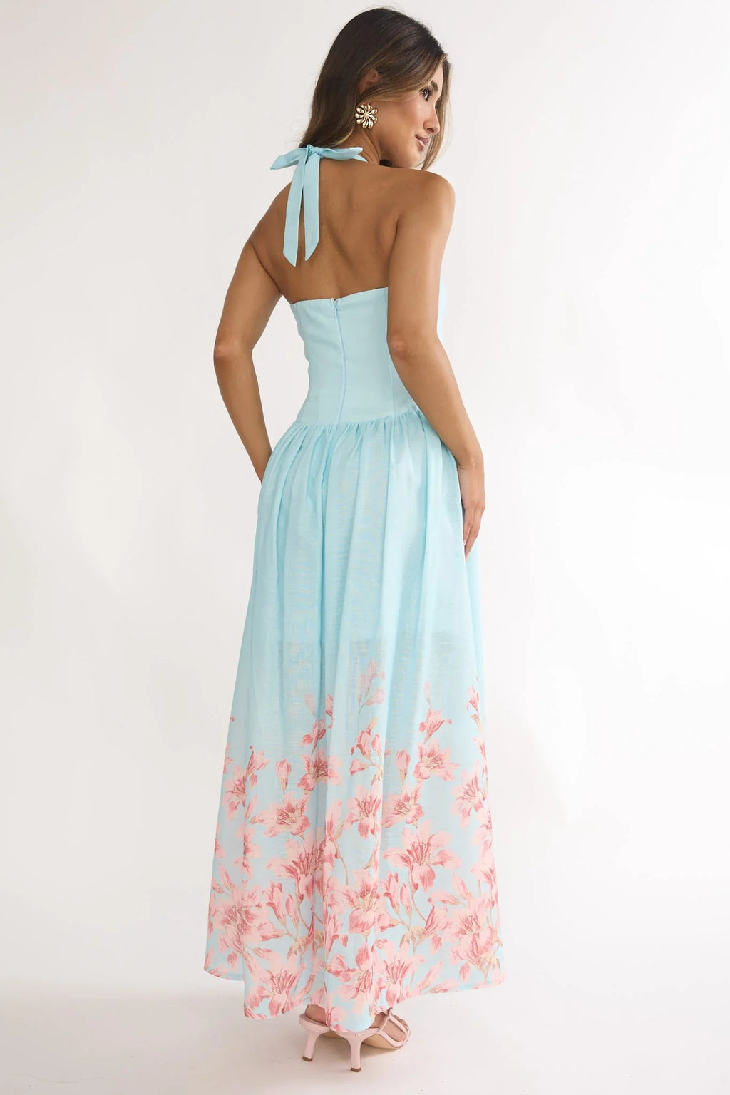 HALTER RUFFLE MAXI DRESS